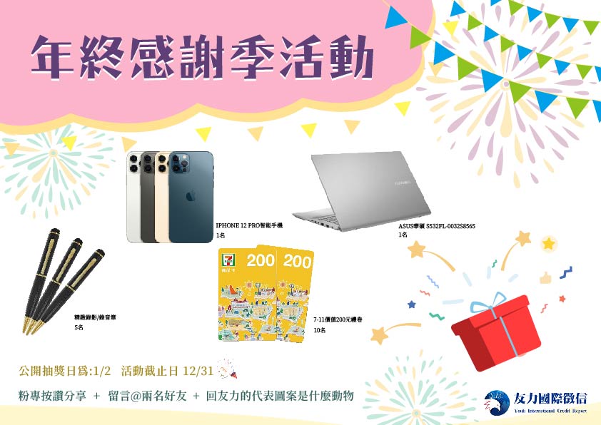 回饋廣大的舊雨新知,感謝多年以來對【友力國際徵信】的信賴,